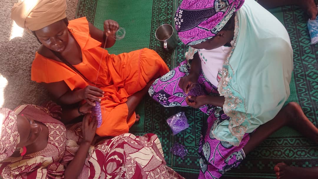 Nous avons récemment (février-mars 2025) organisé une formation de 10 jours pour initier les femmes à la fabrication d’objets artisanaux en perles, tels que des sacs à main et des sous-tasses. Cette initiative vise à leur fournir des compétences manuelles et à leur offrir une opportunité de générer des revenus.